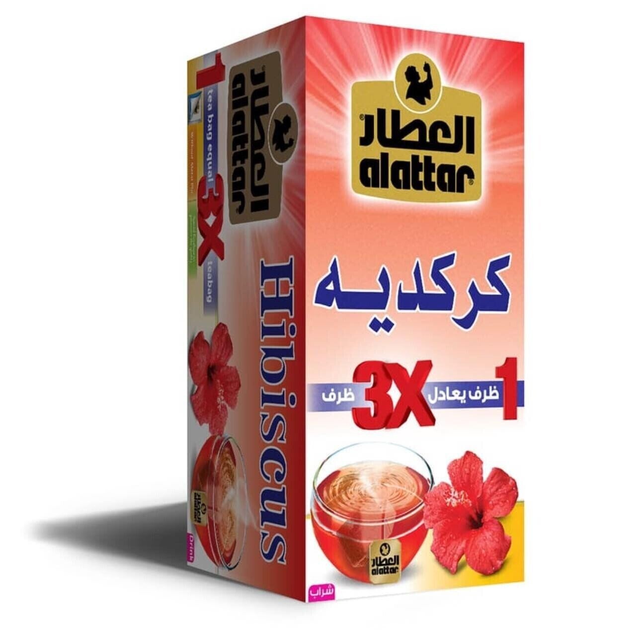 Alattar Karkade to tradycyjna herbata z hibiskusa, popularna w krajach arabskich i Afryce Północnej. Charakteryzuje się intensywnym, lekko kwaskowym smakiem oraz głębokim czerwonym kolorem. Produkt w wersji 3x skoncentrowanej, dzięki czemu jedno opakowanie wystarcza na przygotowanie większej ilości napoju.