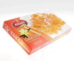 Enjoy the refreshing and sweet taste of traditional Turkish Delight with a delicious orange flavor. These soft, jelly-like cubes are coated in powdered sugar and offer a fruity, citrusy twist.